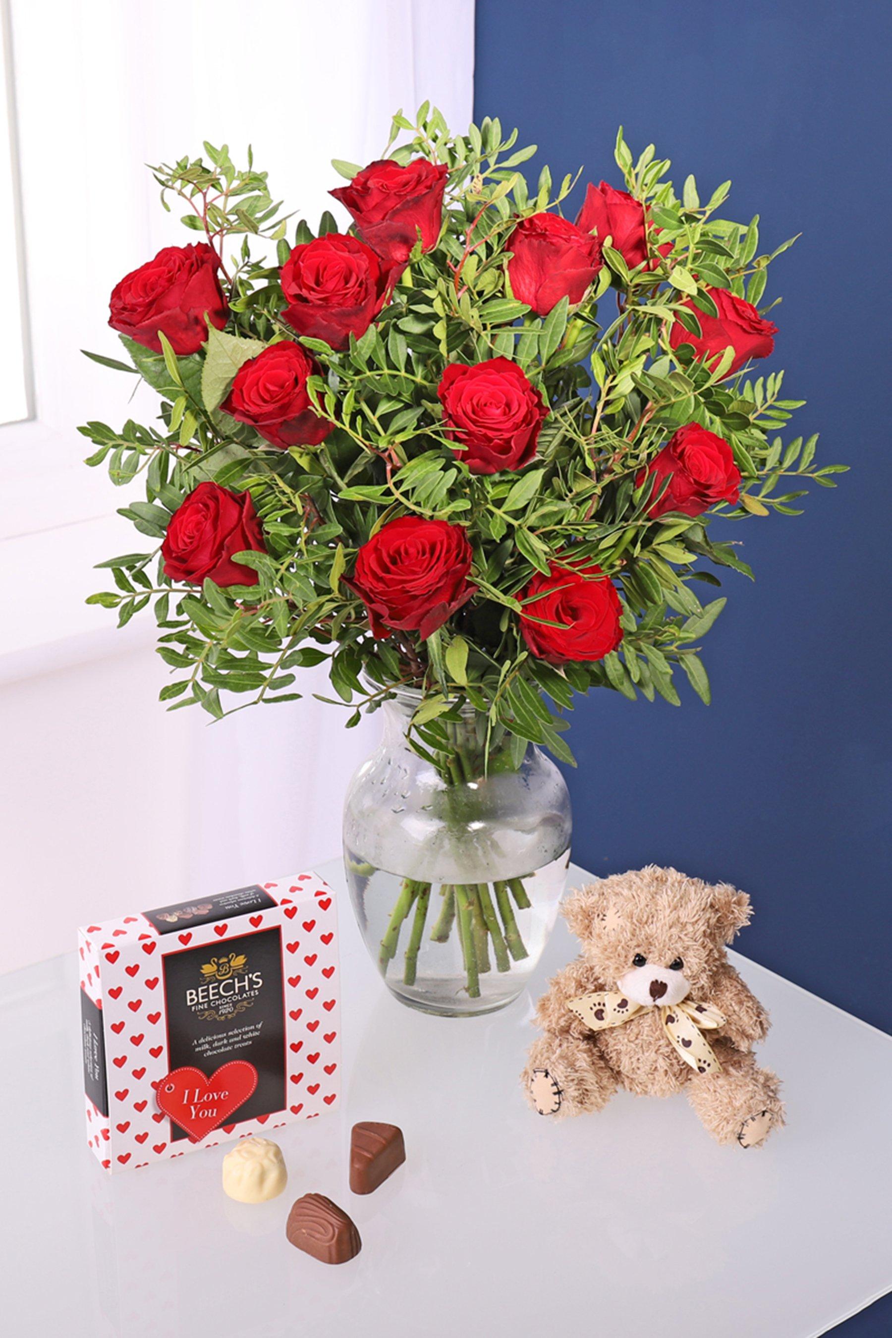 Red Roses Bouquet And Teddy Bear Studio